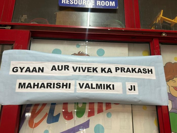 The Principal addressed the gathering and appreciated the students for their sincere efforts, encouraging them to imbibe the virtues of honesty, wisdom, and compassion exemplified by Maharishi Valmiki.